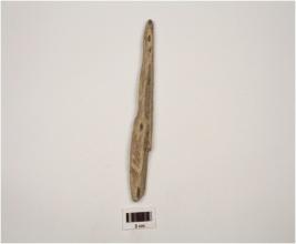| Description / विवरण | A bone with pointed ends, surface is rough, brown in colour and cracks are visible, uneven also. |