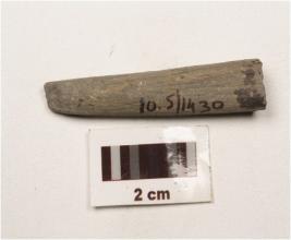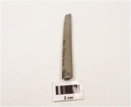 | Description / विवरण | A bone point with pointed end, cracks on surface, smooth brown in colour and rectangular cross section. |