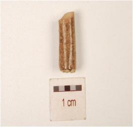 | Description / विवरण | Fragment of a bone point, having a polished surface, circular section and both ends are broken. |