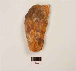 | Description / विवरण | A scraper made on chert, ridge and platform on ends, irregular cutting edges, flat surface. |