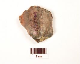 | Description / विवरण | A scraper made on chert ridge on dorsal surface, irregular cutting edges, prominent bulb on ventral surface. |