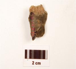 | Description / विवरण | A scraper made on chert, ridge on surface, prominent bulb on ventral side, irregular cutting edges. |