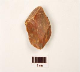 | Description / विवरण | A scraper made on chert, prepared platform, on proximal end, ridge and flake scars on surface, use wear edges. |