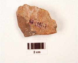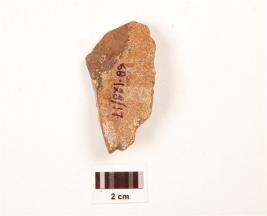 | Description / विवरण | A scraper made on chert, ridge on dorsal surface, difused bulb on ventral, irregular cutting edges. |