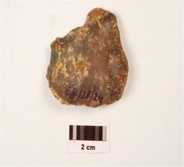 | Description / विवरण | A scraper made on chert, prepared platform on proximal end, prominent bulb on ventral, ridge on dorsal surface, irregular cutting edges. |
