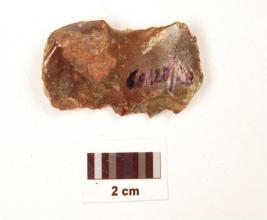| Description / विवरण | A flake made on chert, flake marks and ridge on dorsal surface, cutting edges, difused bulb on ventral surface. |