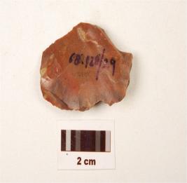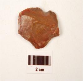 | Description / विवरण | A scraper made on chert, ridge on dorsal surface, use wear cutting edges, difused bulb on ventral surface. |