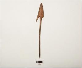| Description / विवरण | Fragment of arrow head between two sides , one side is broken long tang and circular section. |