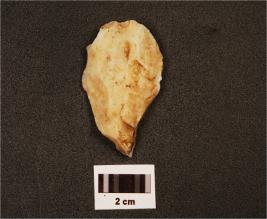 | Description / विवरण | A scraper made on chert, ridge and flake marks on dorsal surface, difused bulb on ventral surface. |