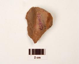 | Description / विवरण | A scraper made on chert, ridge on dorsal, irregular cutting edges, difused bulb. |