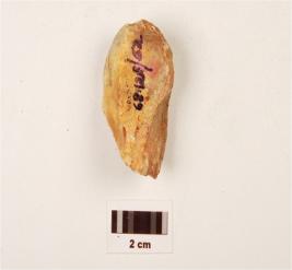| Description / विवरण | A scraper made on chert, ridge on dorsal surface, prepared platform, use wear edges, difused bulb on ventral surface. |