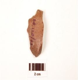 | Description / विवरण | A flake made on chert, ridge on dorsal surface, cutting edges. |