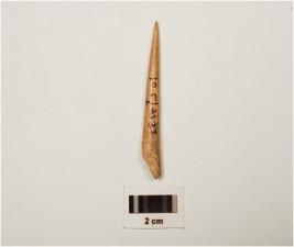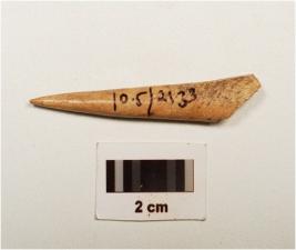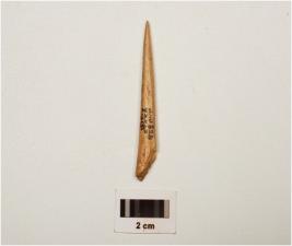 | Description / विवरण | Fragment of a bone point, one end, is sharp pointed end other end is partly broken, circular cross section and well polished surface. |