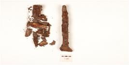 | Description / विवरण | A nail made of iron, rough surface uneven surface, rectangular in section and flat head. |