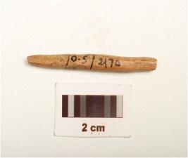 | Description / विवरण | Fragment of a bone point, both ends are partly broken, well polished surface and brown in colour. |