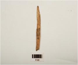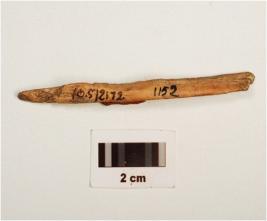 | Description / विवरण | Fragment of a bone point, one end pointed and other end partly broken, well polished surface and brown in colour. |