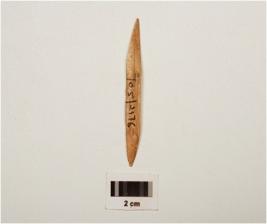 | Description / विवरण | A bone point, both ends one sharp pointed, flat surface and well polished surface. |