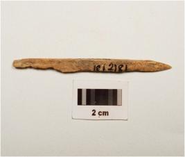 | Description / विवरण | A bone point, both ends are sharp pointed, well polished surface and light brown in colour. |