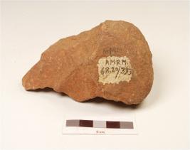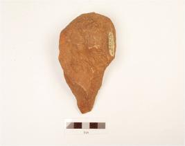 | Description / विवरण | A handaxe made on quartzite pebble, flake scars on both side, triangular in shape, triangular in cross section, wavy working edge and cortex partly intact on surface. |