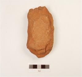 | Description / विवरण | A chopping tool made quartzite end struck flake, wavy working edge, cortex partly intact on one side and bi-convex in cross section. |