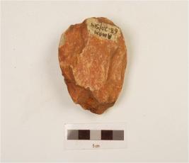 | Description / विवरण | A scraper made on quartzite end struck flake, bulb absent, prepared platform, bi-convex in cross section, and wavy working edge. |