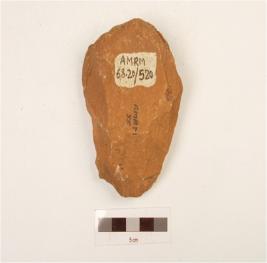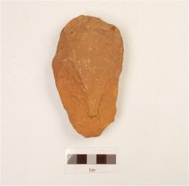 | Description / विवरण | A handaxe made on quartzite end struck flake, wavy working edge, flake scars on both side, cortex intact on one side and plano-convex in cross section. |