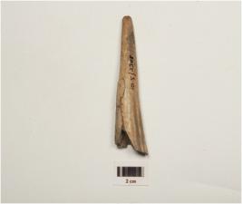 | Description / विवरण | A horn chisel with polished surface, slightly broken at both pointed ends and triangular cross section. |