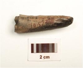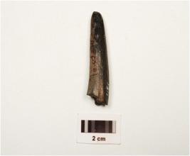 | Description / विवरण | A horn chisel polished surface with a pointed end other end is broken light brown in colour and circular in section. |