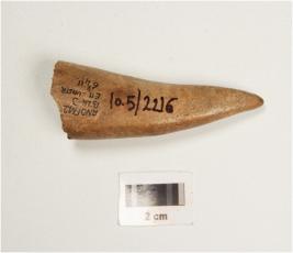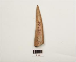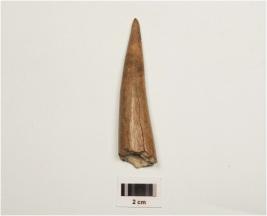 | Description / विवरण | Fragment of a point on horn with modifide and well polished surface, pointed towords one end, thicker and broken other end. |