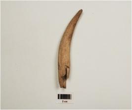 | Description / विवरण | A point on horn with modifide and well polished surface, broken alonge both ends and hellow in center. |