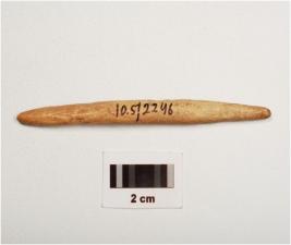 | Description / विवरण | A bone point with polished surface pointed at both ends and semicircular cross section. |