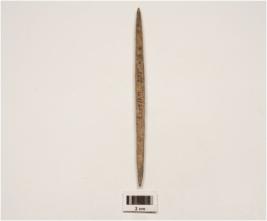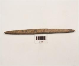 | Description / विवरण | A bone point with pointed both ends, slightly damage, rough and polished surface. |