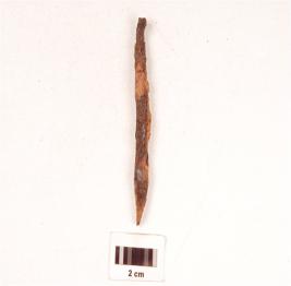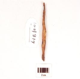 | Description / विवरण | An iron nail, flat top and broken both the ends, fragile in condition and chemically treated. |