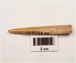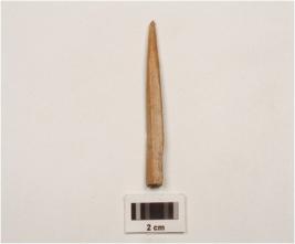 | Description / विवरण | Bone point one end is pointed but slightly broken other end is borken smooth and polished surface. |