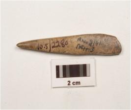 | Description / विवरण | Bone point, pointed one end and other end is broken polished and smooth surface. |