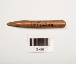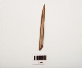 | Description / विवरण | A bone point with polished surface pointed at one end and semicircular cross section. |