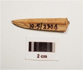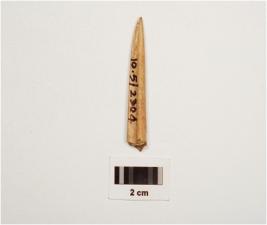 | Description / विवरण | Fragament of bone point with polished surface pointed at one end and rectangular cross section. |