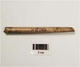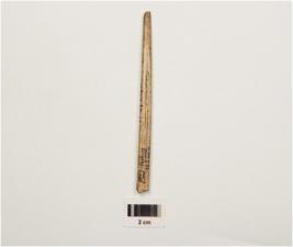 | Description / विवरण | Fragment of bone point with polished surface, semi- circular cross section, broken at both ends. |
