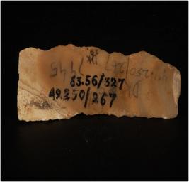 | Description / विवरण | Chert blade, mid ridge on the dorsal side and prepared platform. |