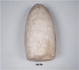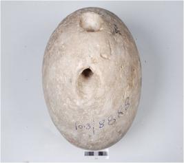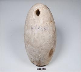 | Description / विवरण | An anchor stone, heavy in weight, conical top with perforation on the neck to facilitate rop for use of boating. |