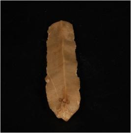 | Description / विवरण | Parallel sided blade on chert with single ridge on dorsal side, smooth ventral, triangular section and use wear marks on the cutting edge. |