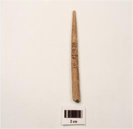| Description / विवरण | A bone point fragment with broken pointed end, smooth surface. |