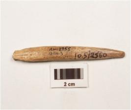 | Description / विवरण | Bone point, broken on both ends, rough surface and polished surface. |