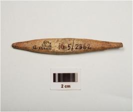 | Description / विवरण | Point with polished surface at one side & porous surface at other side, slightly broken at both ends, broad middle part and rectangular cross section. |