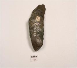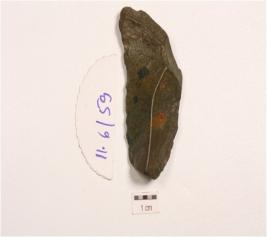 | Description / विवरण | Side scraper made on end struck chert flake, diffused bulb on ventral surface, irregular retouches along cutting edges, flake scars on dorsal surface and triangular cross section. |
