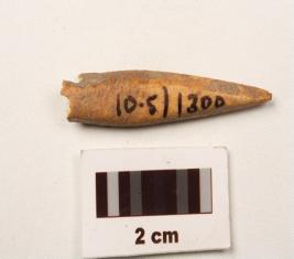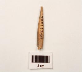 | Description / विवरण | A bone point fragment, smooth surface, slightly broken pointed end. |