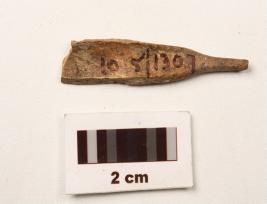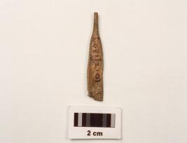 | Description / विवरण | A fragment of charred bone point with smooth surface, slightly broken from pointed end. |