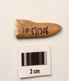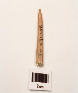 | Description / विवरण | A bone point with smooth surface, rectangular in section, partly broken from one end. |