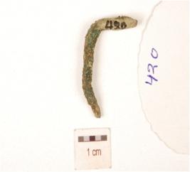 | Description / विवरण | A copper nail, green incrustation on surface, broken from both ends and slightly bent. |