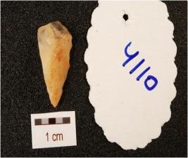 | Description / विवरण | A flake, made on quartz with flake scars on dorsal, cortex on surface and white in colour. |